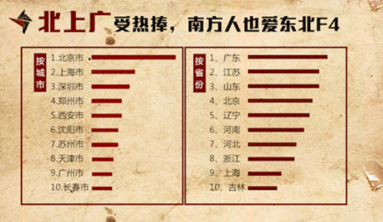 一直以来,提到《乡村爱情》系列,一般都会说该系列在北方拥有深厚的观众基础。但来自腾讯视频的数据显示,主要观剧人群的集中地竟然不是东北三省,东南沿海和一线城市观众,竟然成为主要观剧人群!《乡村爱情》系列因为其一贯的表现,已经克服了地域的差异,数据显示北上广的观剧人群相当集中,来自东北的《乡村爱情8》在南方一样红!