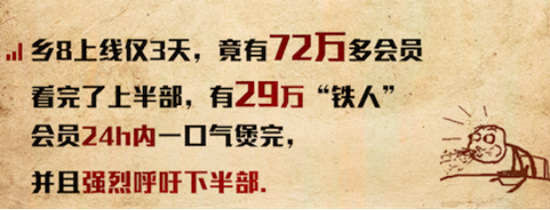 在腾讯视频上《乡村爱情8》(上)有了一个令人瞩目的火爆开端,刷屏之势尽显;首播3日,不仅播放量爆发,更是引发了海量年轻用户的追剧热。作为腾讯视频重量级会员观看电视剧,《乡村爱情8》雄厚的群众基础、良好的市场口碑、得天独厚的品牌资源、腾讯视频超强的大剧运营能力,都是其“一马当先”的有力保障。而视频付费时代的真正来临,也必然要求越来越多优质内容紧随其后,未来,腾讯视频将提供更多更优质的作品,使会员体验不断改善升级。