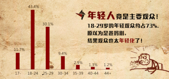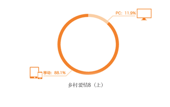 传统印象中《乡村爱情》系列的观众群体应该偏中老年,用户观剧的渠道应该偏电视和PC。但是来自开播后腾讯视频的数据显示,通过PC端和移动端观看数量分别占据11.9%和88.1%,显然移动端更受青睐,这也是网络人群的显著特征,需要随时随地以及碎片化时间自由观看。