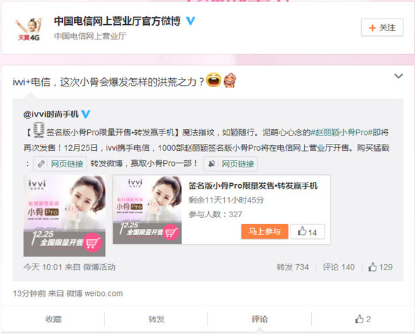 限量1000台的ivvi小骨pro赵丽颖签名版将于电信的网厅和掌厅、宝宝购机等一同上线,喜欢“小骨”的用户可以选择最方便的方式进行购买。
