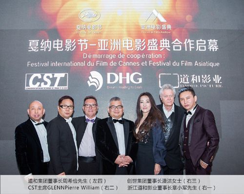 仪式上,CST正式授权于道和影业举办戛纳电影节-亚洲电影盛典。道和集团董事长周希俭和CST主席GLENN Pierre William.格兰·皮艾尔维廉共同对外宣布:道和集团成员企业道和影业与CST达成合作,未来将共同打造“戛纳电影节-亚洲电影盛典”。法国戛纳国际电影节创于1939年,是当今世界最具影响力、最顶尖的国际电影节之一,与威尼斯国际电影节、柏林国际电影节并称为欧洲三大国际电影节,最高奖是“金棕榈奖”,而即将在中国举办的电影节中颁发的Vulcain技术奖(Vulcain Prize for the Technical Artist),和戛纳电影节其它获奖片一样,都是从参选竞争片中选出的一部片子,该奖项由CST设立和颁发,颁发给在摄影或音效或剪辑等技术方面杰出的电影。去年得此奖的是匈牙利电影《索尔之子》,此片曾获今年奥斯卡最佳外语片。