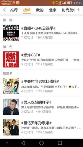 优酷的#直播AKB48总决选和##中关村技术宅霓虹盛筵#霸占热门话题第一第二。