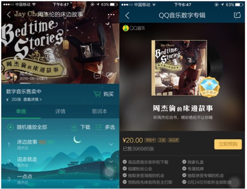 Jay的粉丝和QQ钱包的用户,进入QQ音乐-音乐馆-专辑页面,或者直接点击周杰伦新专辑推广位,即可进入《周杰伦的床边故事》专辑页面,点击立即购买,在支付方式中选择QQ钱包支付,即可享受现金红包福利。此外,在6月24日,与QQ钱包一起支持周董最新数字专辑《周杰伦的床边故事》,当天还可以通过QQ钱包购买《惊天魔盗团2》电影票,先睹为快,在影片中欣赏周董的国际风范!