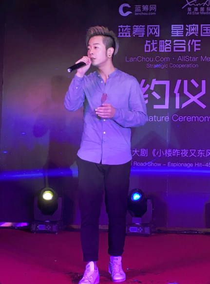 灯光璀璨的金色大厅星光闪耀,签约仪式的现场迎来了两位重量级偶像男主角:音乐疯子张玮和创作型歌手王晓天。因极具个性的嗓音而声名大噪的流行歌手张玮,为本次战略合作签约仪式助阵,他超高的人气为会场增添了无穷的激情与活力。凭借《再见吧,喵小姐》人气火旺的歌手王晓天,也倾力助阵蓝筹网与星澳国际文化传媒战略合作签约仪式的现场,并演唱了他最近发布的新歌《想你》。