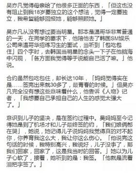 跟SM解约则是更大的叛逆,这意味着他要放弃被人铺好的星路,重新开始。韩国流水线一样的工业化造星体系里,颜值是可以塑造出来的,人设是可以设定好了的,一起都会安排的很好然而并不自由——可是吴亦凡还是选择了“回家”,走自己希望走的路。