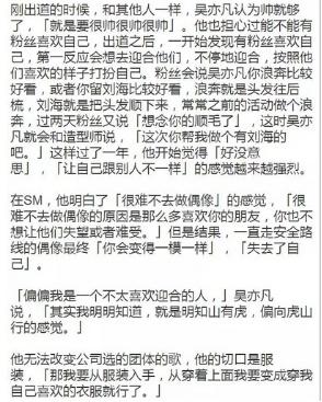 在韩国出道后,作为偶像,迎合粉丝是第一要务,然而他却很快厌倦了一味的迎合,想要更多的表达自我,比如用衣服——