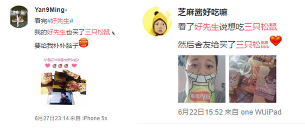 针对不用类型的消费者,《好先生》植入都起到了不错的传播效果。对于从未接触过三只松鼠品牌的消费者,品牌的高效曝光以及对美味的极致体现,无疑是一种全方位的洗脑、怒刷存在感,让更多消费者开始尝试三只松鼠,品牌到达率有了大的提升。