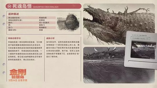 此外,岛上还有一些其他生物,由于骷髅岛与世隔绝,它们的进化过程更加独立,所以外形足够电影创作者们发挥他们的想象力了▼