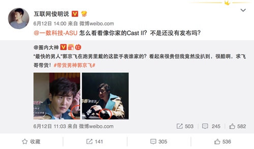 在得到@一数科技-ASU 确认该手表确实为本公司未上市新品后,科技圈里上演了一波围观热潮。一数科技对于这次的意外走红却有些有苦难言。科技圈里新品上市之前习惯保留神秘感,以吸引用户持续注意。据悉,一数科技原定于10月份召开发布会正式公布这款新产品,没想到被郭京飞带上了跑男节目并且呈现给了全国观众,神秘感完全破裂。一数科技CEO曹腾微博直言:十月份的发布会要讲什么?官方微博小编也是跪求大家不要转发扩散,以免更多曝光。