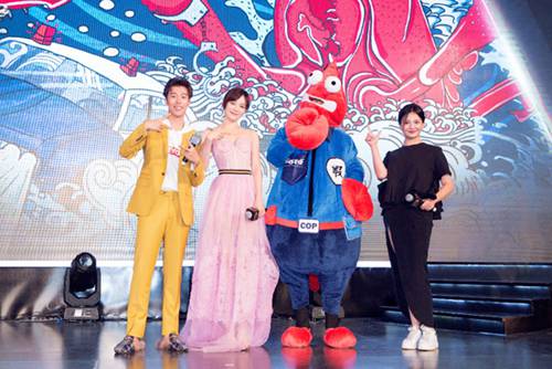 除了腰花,也少不了人人都爱的小龙虾。都说上影节是“小龙虾节”,这个誓将龙虾进行到底的剧组《龙虾刑警》也麻辣亮相,美女导演李昕芸携袁姗姗、周游现身,不仅带来了超大的龙虾人偶“虾闹闹”现场搞事情,还在黄浦江游船上准备了一吨小龙虾!而比小龙虾更诱人的当然是剧组唯一一枝花——“马甲线女王”袁姗姗,粉色蕾丝低胸长裙惊艳亮相仙气十足,大秀性感好身材。而我们的女主袁姗姗一上台竟“串戏”到了隔壁《枪炮腰花》,全场瞬间爆笑!自称“警花”的袁姗姗笑称“剧组美食密布,减肥全靠意念。”
