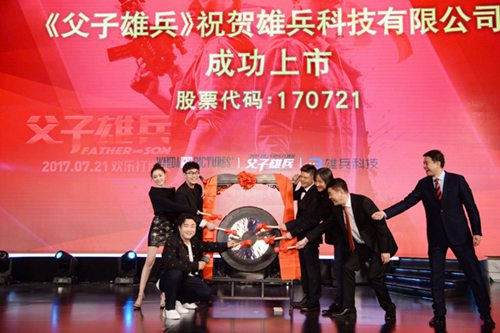 作为万达之夜的“老朋友”,大鹏“又”来了!这一次“十亿大导”大鹏作为《父子雄兵》的监制兼主演亮相,和张天爱牵手登台“大撒狗粮”,引全场尖叫。女主张天爱黑色短裙大秀白皙美腿让人挪不开眼,而另一位自带喜剧BGM的主演乔杉一现身竟是在发小广告 ,全程小品段子上身让全场笑声一浪接一浪。除了笑果十足的现场演绎, 剧组还别出心裁地进行了科技范儿十足的上市敲钟仪式,掀全场高潮。