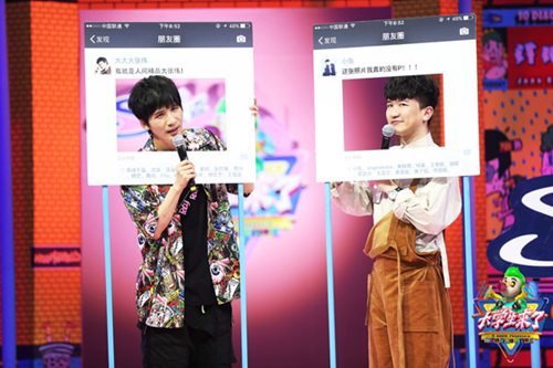 节目一开场,“大大大组合”就从自己的朋友圈里面亮相。大张伟在朋友圈中是很不活跃的人。不过他对易烊千玺的朋友圈却是赞不绝口:“他的朋友圈里面的东西都特别棒。都是祖国的山水啊,谁的新画啊,哪儿又开了什么展览啊,都是特别发人深省,让人值得学习的东西。”