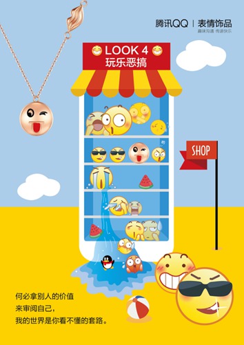 QQ表情是QQ聊天过程中用于传递情感心情的表达符号,深受年轻人的喜爱。 “QQ表情饰品”,将QQ表情在线上的趣味快乐摇身幻化,在线下绽放多姿的美丽时尚,彰显“我快乐,就时尚”的年轻态度。