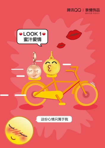 从7月8日起, 由腾讯QQ授权,众多潮流时尚饰品设计师担纲主持设计的QQ表情饰品在全国各大珠宝店面陆续登陆, 上演快乐碰撞美丽的“时尚”大戏。