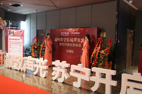 7月14日,由湖州苏宁影城主办的“湖州苏宁影城开业仪式”在1号激光厅隆重召开。湖州飞英街道党委副书记、办事处主任金嘉杰、中国建设银行湖州支行行长李枫,湖州苏宁云商总经理周俊,苏宁影城公司副总裁郭良,苏宁影城公司总裁助理段大磊,湖州日报主任助理蔡洁凡等领导及湖州当地各大媒体共同出席了庆典。这是苏宁集团继上海、镇江、日照、济宁、鞍山、包头、南京、徐州、滁州之后的第十家影城。自此苏宁影城布局已初具规模。