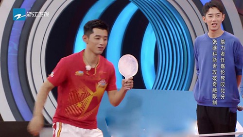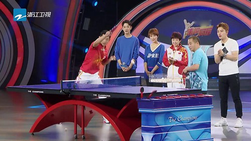 还要使用冰球拍奇葩道具对战颇有乒乓球运动基础的任嘉伦。