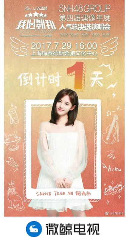三伏天了,你热不热呀?来看小姐姐们降降温吧。万众瞩目的SNH48 GROUP“我心翱翔”第四届偶像年度人气总决选演唱会将于7月29日在上海梅赛德斯奔驰文化中心隆重举行!微鲸电视将全程直播“SNH48 GROUP“我心翱翔”第四届偶像年度人气总决选演唱会”,少女之战,谁将登上王者宝座?一起来见证本年度偶像人气之王的诞生吧!