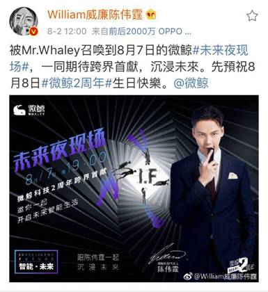 除了代言人陈伟霆的到来,8月7日未来夜上,微鲸所称的其他神秘嘉宾又会是谁呢?