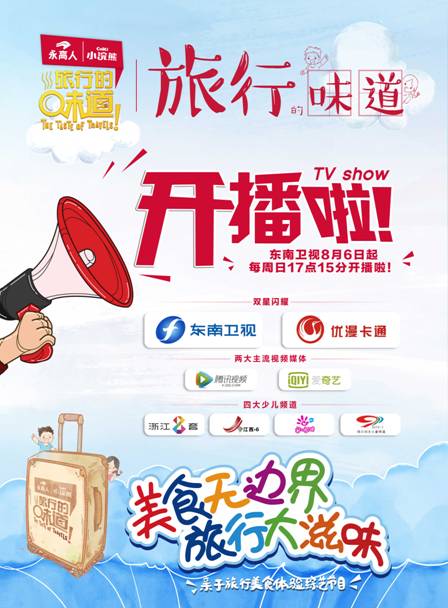 历经一年的精心拍摄制作,由永高人童装童鞋和小浣熊婴童护理联合冠名播出的大型亲子美食旅行体验综艺《旅行的味道》将于8月6日起强势登陆东南卫视。据悉,优漫卡通、浙江少儿、江西少儿等全国省级少儿频道也将上档,爱奇艺、腾讯视频、新浪育儿频道等一线网络视频平台同步播出。
