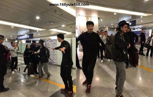 王力宏全程保持微笑,在保镖的护送下脱身。随后保安将女粉丝“绑”在机场隔离栏上,该粉丝没有停止喊叫,并一把推开保安,喊着“王力宏你是个男人站出来”,随后一路小跑追了出去。
