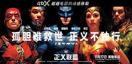 DC首部英雄联盟电影《正义联盟》已于11月17日在内地4DX影厅全面上映。这部耗资3亿美金打造的视听盛宴,在4DX的加持下,观影体验变得空前震撼,并得到了海内外粉丝的一致好评。影片集结了DC旗下蝙蝠侠、神奇女侠、超人、闪电侠、海王、钢骨等人气超级英雄,共同备战,合体吊打超级大反派荒原狼。而此次4DX推出的定制版《正义联盟》震撼视听史无前例,口碑空前炸裂。