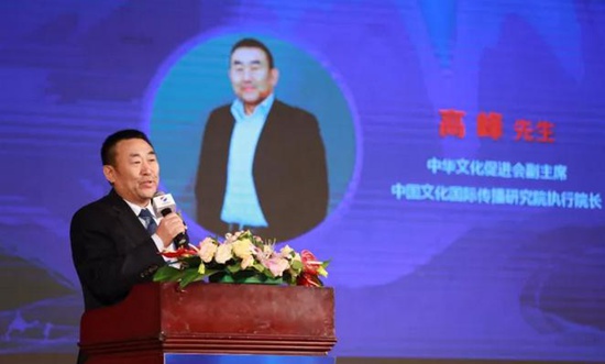 中国文化促进会副主席、中国文化国际传播研究院执行院长高峰表示,在世界历史上没有任何一条路像丝路这样光辉灿烂,世界重要的文明在这条路上交织相遇,在当今社会也没有任何一条路像丝路这样随着中国的改革开放和“一带一路”的提出如此风生水起。他认为:今天在这条路上从事文化活动,是最具文化品位,最具艺术性,也最具广泛性的一个文化活动。他还分享了曾跟“丝路文化季首席形象大使”六小龄童先生在印度的经历,深深体会到六小龄童及他所演绎的《西游记》,在印度的孩子心中是如此的根深蒂固,影响巨大。他认为任何的文化都是相通的,他希望有更多的人能对这项文化活动给予大力支持,像“一带一路”将出现辉煌的成就一样,同时预祝丝路文化季系列文化活动取得重要成果。