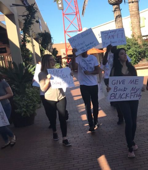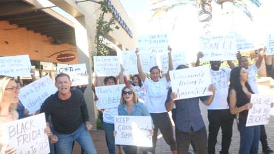 现场目击者称,抗议者聚集在洛杉矶被称为旅美必逛购物圣地的城堡奥特莱斯门口,向在场的华人游客、华人代购人员提出抗议,请他们手下留情,归还黑色星期五給美国人,让美国人能够在当天买到心仪商品,为家人和朋友备下圣诞礼物。