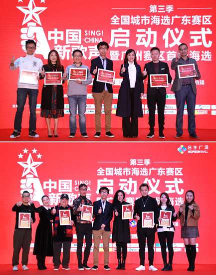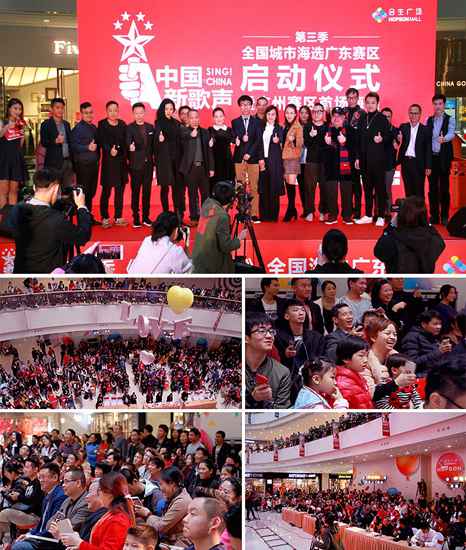 2017年11月26日下午,第三季《中国新歌声》广东赛区暨广州赛区海选启动仪式在合生广场隆重举行,万众瞩目的首场海选也随即开赛。当日出席的除了广东赛区组委会成员、各合作单位和数十家媒体外,更有上一届明星学员现场助阵献唱,气氛热烈,粉丝慕名而来,吸引了众多市民驻足围观。