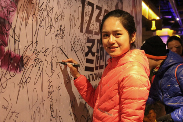 现场邀请了冬跑日训练营四个城市跑者代表上台分享自己如何挑战寒冬,不屑风雪: