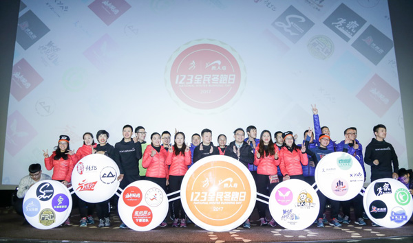 分享会尾声,众跑团云集登台点亮徽章,为贵人鸟123全民冬跑日打call!