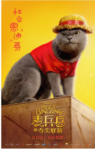 在今日发布的角色版海报中,三位主角新年换新装,当仁不让地引领起宠物界的时尚潮流。土著部落王子的宠物猪麦兵兵化身真·猪队友,怀抱“女票”开怀大笑,粉嫩毛茸茸的触感让网友看后大呼:“可爱!想吸!”作为剧中的搞笑担当,大鹅布飞化身时尚达人,戴起铆钉项圈,嘻哈范儿十足,他的名字也引发段子手们争相调侃,有网友表示:“一只叫‘不飞’的鹅,仿佛失去了梦想。”三小只中人气最高的当属猫届一霸恩迪哥,虽然表情中写满了“生人勿近”,但他头戴草帽,身穿红马甲的造型依然让不少猫奴尖叫连连。此前片方还曾发布过一组角色预热海报,海报中用与角色名称相关元素隐喻地展现了三只宠物各自的名号,引发网友们广泛猜测。