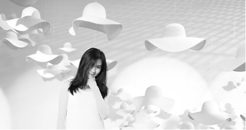 你可以不戴帽子,像这样低头看镜头,和帽子来一场奇妙的约会。