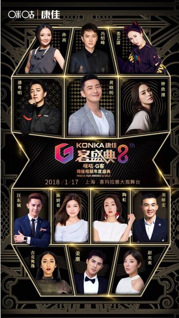 让原创不止于此,让创新没有极限。秉承“创·无限”主题理念,康佳第八届咪咕·G客网络视频年度盛典(以下简称“G客盛典”)于2018年1月17日在上海喜玛拉雅艺术中心盛大举行。延续过往七届“G客盛典”的成绩,今年G客盛典更是在星光度、专业度、舞台呈现等环节持续升级。