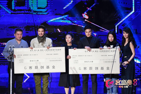 除以上奖项外,本届大会首次设立的“G客原创基金”在最后一轮颁奖环节中隆重揭晓。在当日上午举行的路演决赛中,“冒险雷探长”及“陈雨倩团队”两支视频创作团队从十组进入决赛的选手中脱颖而出,分别获得100万人民币的奖金用于作品创作,他们将来的作品将来会在咪咕视频独家播放。