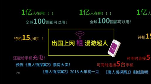 电影《唐人街探案2》算是正式把“唐探宇宙”初步建立了起来,而雄心勃勃准备大干一番的也不仅仅只有唐探剧组,境外随身WiFi的行业领导者“漫游超人”也看到了“唐人街探案”这一大IP的影响力。作为电影《唐人街探案2》独家指定的出境WiFi通讯服务商,漫游超人此次与《唐人街探案2》携手,试水跨界营销。