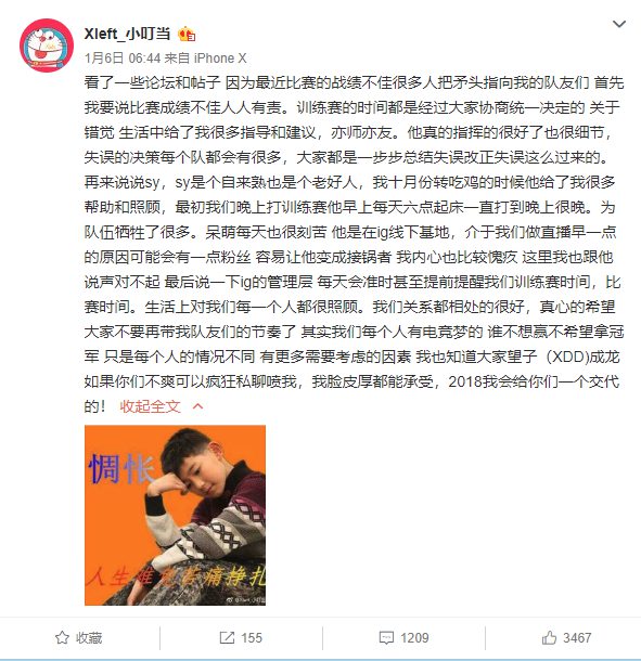 当然,在电竞圈天才少年并不少见,然而能够像小叮当一样拥有如此之高情商的却实在不可多得。在面对外挂的时候,小叮当能够沉稳内敛以“正义”之名惩戒外挂玩家;在面对队友饱受质疑的时候,小叮当愿意勇敢站出来维护队友,行文不卑不亢,有着这个年纪难得的成熟与稳重;在直播中,小叮当总能维持良好的心态,无论输赢都能以平和的心态进入下一局,同时其骚话满满、特点鲜明,吸引了大量的粉丝关注。