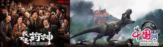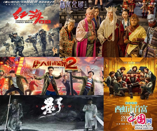 连破票房记录。2017年,国内电影市场报收综合票房559亿元。而2018年春节档,凭借《红海行动》、《西游记女儿国》、《唐人街探案2》、《捉妖记2》等影片,2月单月票房突破了100亿,而在暑期档热映的《侏罗纪世界2》、《超人总动员2》、《我不是药神》、《西虹市首富》等一众影片贡献了174亿总票房,也再次刷新了2017年的163亿电影总票房的记录,经过热闹的十一黄金周,《影》、《李茶的姑妈》、《胖子行动队》等一众影片的纷纷抢滩,其中《影》在国庆档的总票房为6.27亿,喜剧电影《李茶的姑妈》票房为5.31亿元。10月中下旬开始,好莱坞进口大片提升了市场热度,以《海王》、《蜘蛛侠:平行宇宙》为代表的影片,在贺岁档临门一脚,助力了票房新高。2018年12月31日晚,国家电影局发布的官方数据显示,2018年全国电影票房首破600亿元,达到609.76亿元,较去年同期增长9.06%。