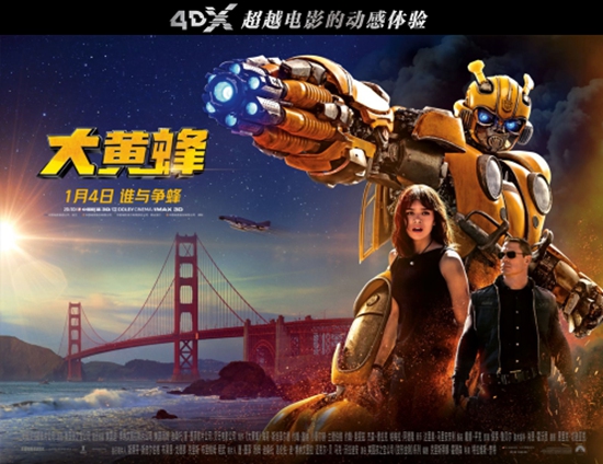 由美国派拉蒙影片公司及腾讯影业联合出品的《变形金刚》系列首部衍生电影《大黄蜂》将于2019年1月4日登陆4DX影厅。该片烂番茄新鲜度和IMDb分数分别高达100%和7.3,一举成为《变形金刚》系列最佳。不少专业电影评论人在观看完电影后给予超高评价,“这是我们一直在等待的《变形金刚》电影!” “这部电影并没有完全专注于花哨的爆炸,和动作场景,它更是注入了一些人文和理性!” 作为1月为数不多的商业大制作,《大黄蜂》将与沉浸式五感体验的4DX影厅擦除怎样的火花?