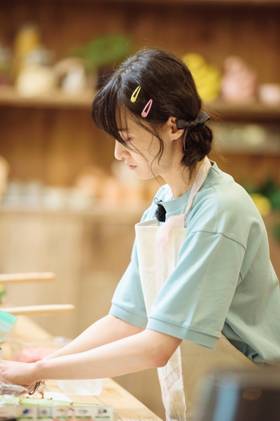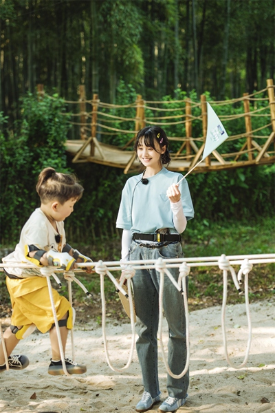 今日发布的这组剧照中,郑爽延续上一期复古校服的清爽少女风,头扎蝴蝶结双麻花辫,搭配彩虹发夹;身着薄荷绿纯色T恤、宽松牛仔裤,脚穿灰蓝色运动鞋。和孩子们互动时,郑爽是温柔暖心的守护者;在厨房里做饭,郑爽又成了能干的小厨娘、私下里克制饮食的自律女演员。