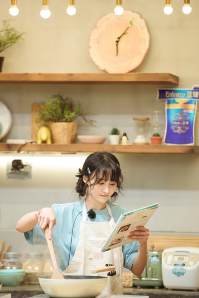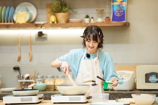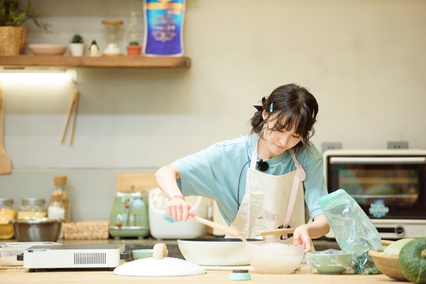 《奇妙小森林》第四期即将上线,森林的夏日絮语继续温暖你心。《奇妙小森林》节目今日发布一组剧照,郑爽头扎蝴蝶结双麻花辫,别着彩虹发夹。录制节目中,在厨房自制低脂减肥餐,手法娴熟,厨艺了得。