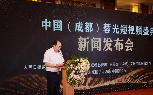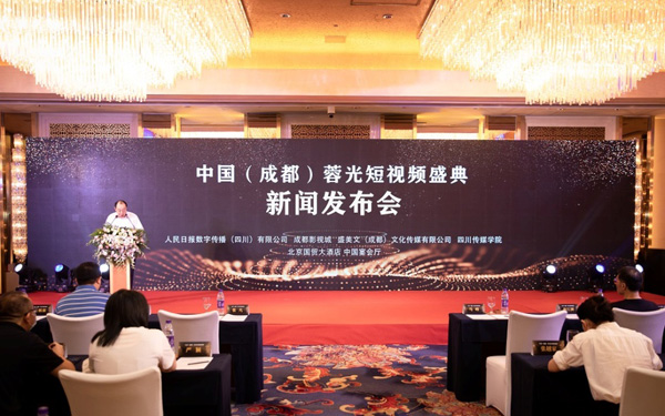 为进一步助力成都发展新经济、培育新动能、建设世界文化名城,促进四川文化产业转型升级,推动中国短视频产业发展,2020年7月30日,人民日报数字传播(四川)有限公司、成都影视城、盛美文(成都)文化传媒有限公司在北京国贸大酒店联合举行新闻发布会,正式启动“中国(成都)蓉光短视频盛典”系列活动,并发布“金蓉奖”短视频征集评选事宜。