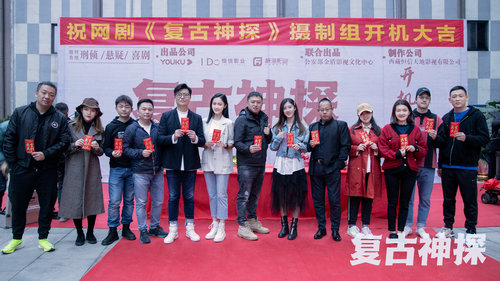 由优酷、恒信影业、枫海影业出品、公安部⾦盾影视⽂化中⼼联合出品的刑侦题材电视剧《复古神探》日前在重庆开机。该剧由陶占海任制片人,导演王骏晔执导,戴正阳、常乐编剧,张哲瀚、郝平领衔主演,兰海蒙、陈瑜婕、曹斐然、张垒、何易主演,艾晓琪特别出演。众主创于11月8日集体亮相该剧开机仪式,共同揭开剧集神秘面纱,阿里文娱相关领导、出品方代表们出席了本次开机仪式。